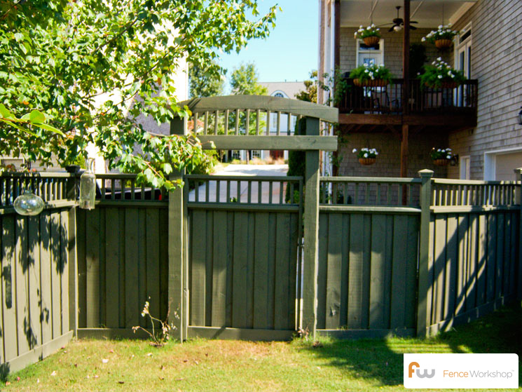 This Board and Batten privacy fence design is fully framed with MCQ™ pressure treated pine lumber. This fence uses concreted 4×4 posts, [3] horizontal 2×4 frame rails, board and batten picketing, [1] 1″x4″ fascia board, [1] 2″x4′ top board and matching post caps.