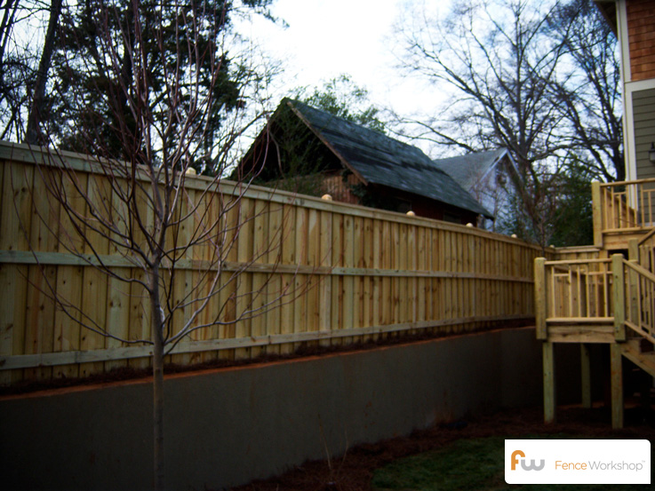 Pressure Treated Pine6 foot tall suggested cost per foot (installed)$18.43 8 foot tall suggested cost per foot (installed)$24.23 Western Red Cedar6 foot tall suggested cost per foot (installed)$26.10 8 foot tall suggested cost per foot (installed)$33.00 |